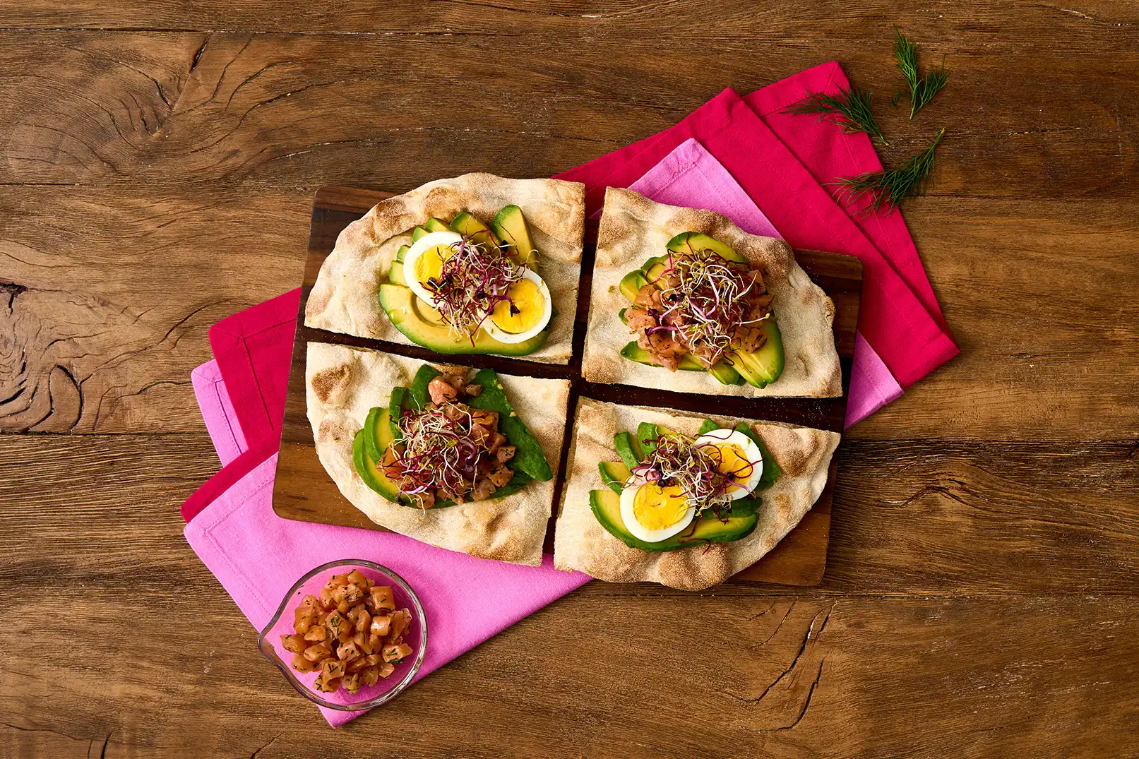 Pinsa Avocado Toast mit Ei oder Lachstatar