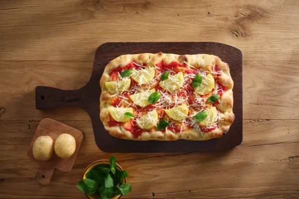 - Cottura in friggitrice ad aria: inserisci la base pinsa Pinsami nel cestello con la base rivolta verso il basso, senza carta da forno o stagnola, e imposta la friggitrice ad aria a 200°C per 3 minuti. Ripeti la stessa procedura, girandola dall’altro lato, e imposta a 200°C per 2 minuti.
